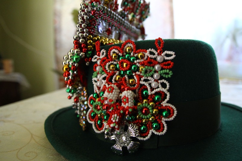男性の帽子につける、ビーズのブローチ、ボクレータ。