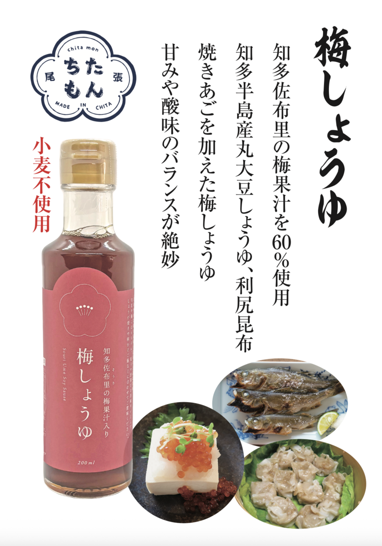 ロケ地・知多市にて厳選された特産品に送られる称号「ちたもんプレミアム」を受賞されました、知多ペコロスドレッシングと、梅しょうゆ をお送りします。