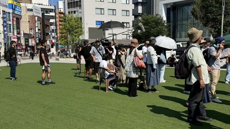 撮影現場も同世代のキャスト・スタッフが多く、とても刺激的でエネルギーに満ちた空間でした。また、映画の冒頭となるシーンでは、たくさんのエキストラの方々に協力していただきました。9月半ばのまだまだ暑い日の撮影でしたが、みんなで力を合わせて乗り越えられたことに心からの感謝しています。