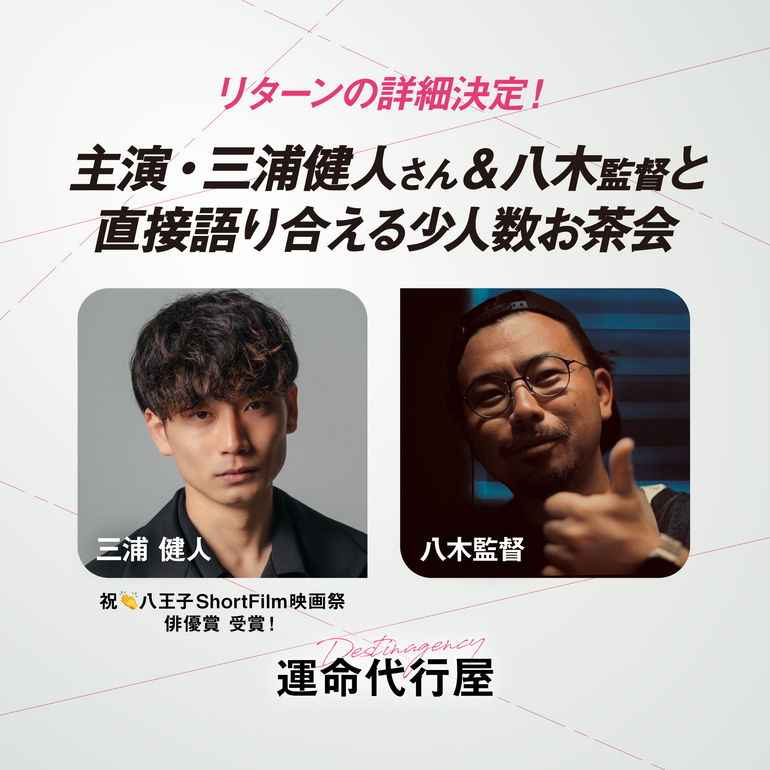 都内某所のカフェにて、映画「運命代行屋」の感想や、撮影・制作の裏話などを
