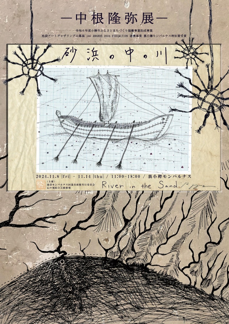 IAG2024では中根隆弥さんが裏小樽モンパルナス特別賞の第一回目の受賞者となりました。同年10月末から2週間滞在し、制作、展示のほかギャラリートーク、ライブドローイングなどで広く市民と交流していただきました。