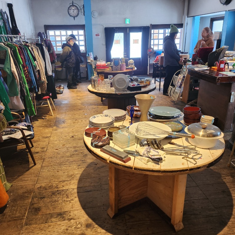 その後様々なお店に関わっていただきながら、2024年5月に裏小樽モンパルナスが複合文化施設としてオープンしてからは、地域の方々にお宅に眠っている古いものを販売していただき、隣のレンタルカフェGCGBでもカフェイベントを同時開催するという形になりました。住民の皆様に積極的にご参加いただき、古くて、懐かしく、珍しく、そして安い品々をたくさんの方に買っていただく、皆さんが楽しみにしてくださるイベントに成長しています。
