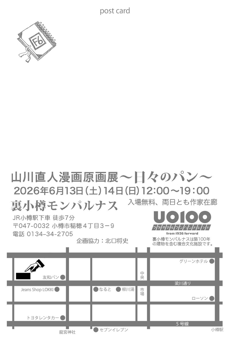複合文化施設、裏小樽モンパルナスについて広く、深く知っていただくためのアップデート。新たに決まったイベント、「山川直人漫画原画展~日々のパン~」についてご紹介いたします。