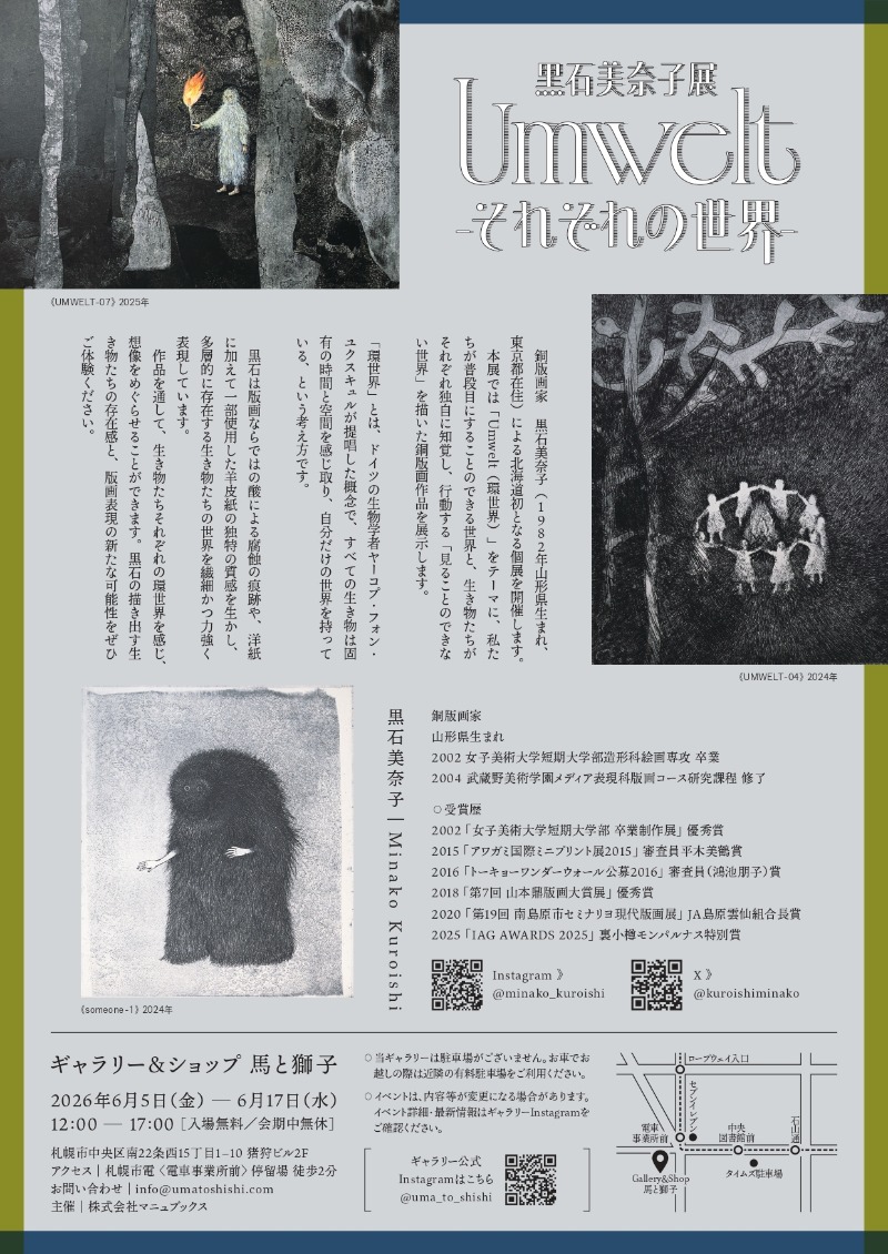 小樽でのレジデンスを前に、黒石さんの素晴らしい作品世界を堪能できる機会ですので、ぜひ足をお運びください。
