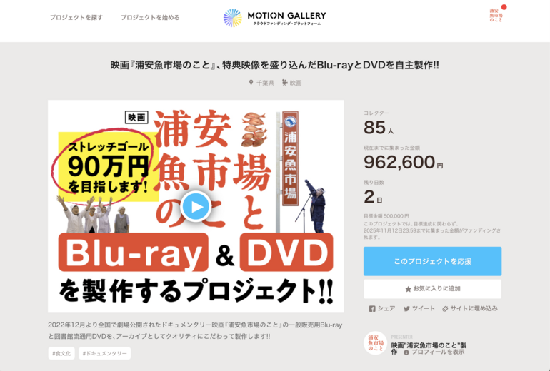 映画「浦安魚市場のこと」のBlu-rayとDVD制作をクラウドファンディングで実現!