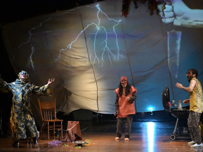 賢人と謳われるヒエロクレスが、ゼウスのお告げを伝える。戦争で先が見えない不確実な運命を体験した人間は聖職者を求める。だから戦争は神にとって有益なのだ、と。「おっしゃっている意味が全然わかりません」というトリュガイオスと奴隷は、ゼウスの雷に打たれ、、!