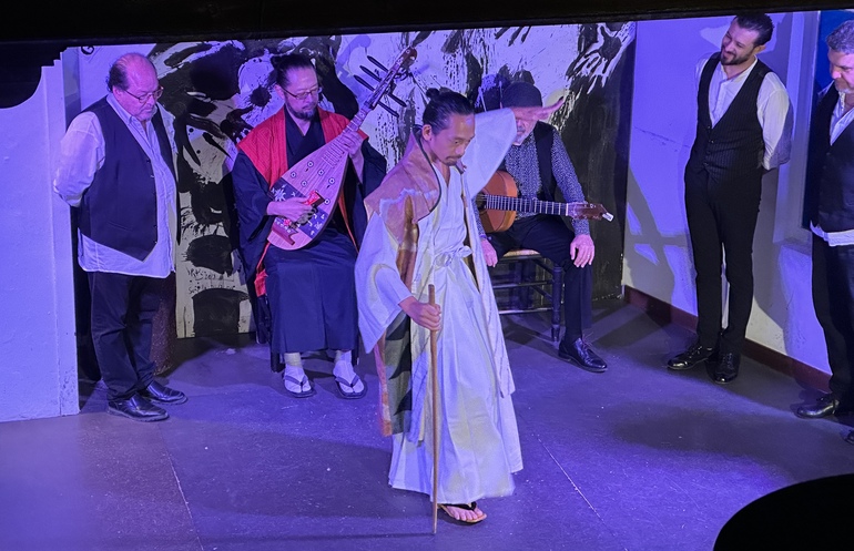 セビージャの有名なフラメンコ店LOS Gallos:琵琶演奏で踊る