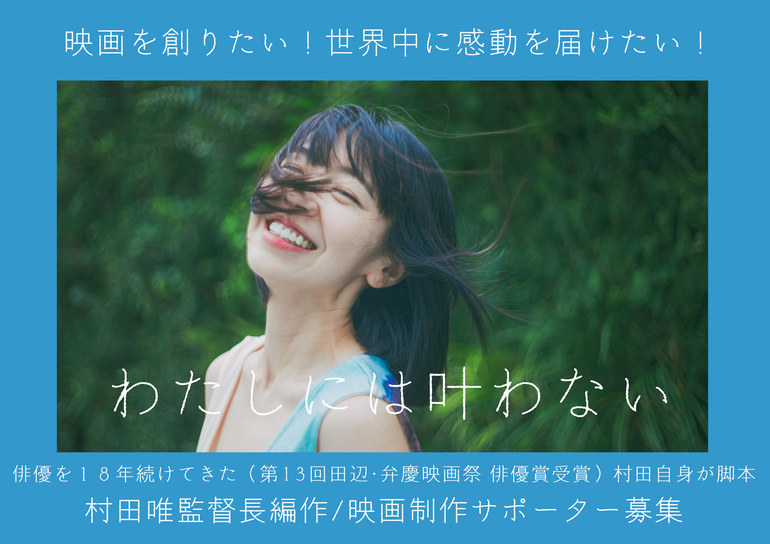 俳優歴18年の村田唯監督による渾身作|長編映画『わたしには叶わない』制作サポーターを募ります。クラウドファンディングの目標金額は1千万円。世界中のマーケットで通用する力強い作品を目指します。