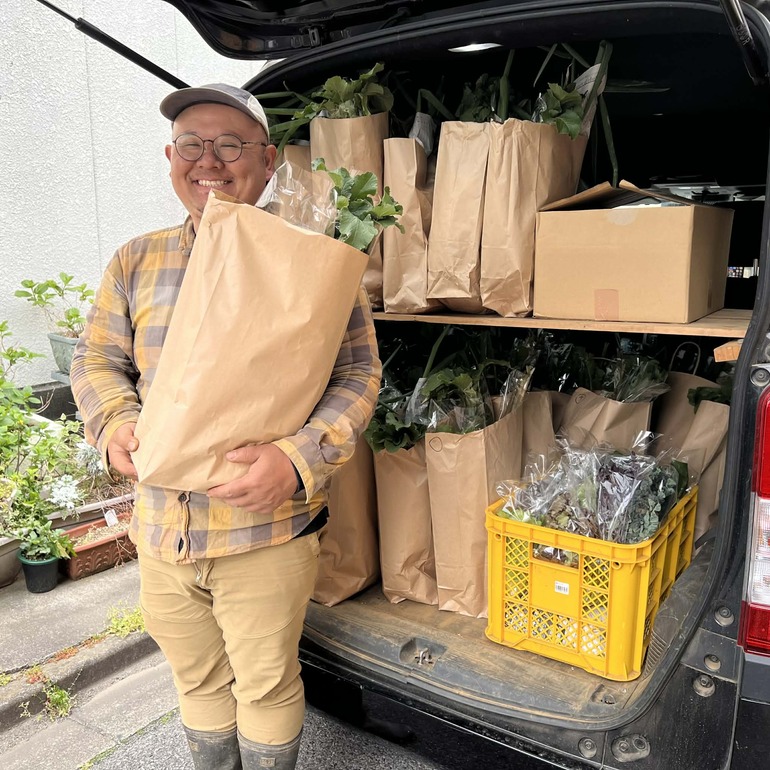 就農前の理想としては、住宅街の真ん中に畑があり、多種多様な野菜を栽培して、近所の住民の皆さんが買いに来たり、時には一緒に農作業をやって楽しむ、というものでしたが、現実は大変に厳しく、住宅街からかなり離れた土地しかお借りすることができませんでした。何とか市役所の方や周囲の農家さんの尽力で船橋市第一号の新規就農者となったわけですが、当初考えていたような直接消費者が買いに来られるような農場ではなく、野菜セットを車で住宅街の消費者に配達するスタイルの農場として農業をスタートさせました。