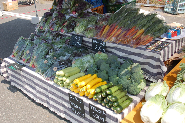 毎週二回の直売日を設け、直売所で直接野菜を買っていただくことができます。私どもは化学肥料や科学的に合成された農薬を使用せずに年間80品目ほどの野菜を生産しています。栽培方法としては『有機栽培』です。しかし有機JASの認証を受けていないので、有機野菜として流通に乗せたり陳列して販売することはできません。市場に出したりスーパーに並べるにはJAS認証は無くてはならない制度です。しかしその分農家の手間にもなり、認証に当たってのコストは当然野菜の値段に上乗せされるものです。