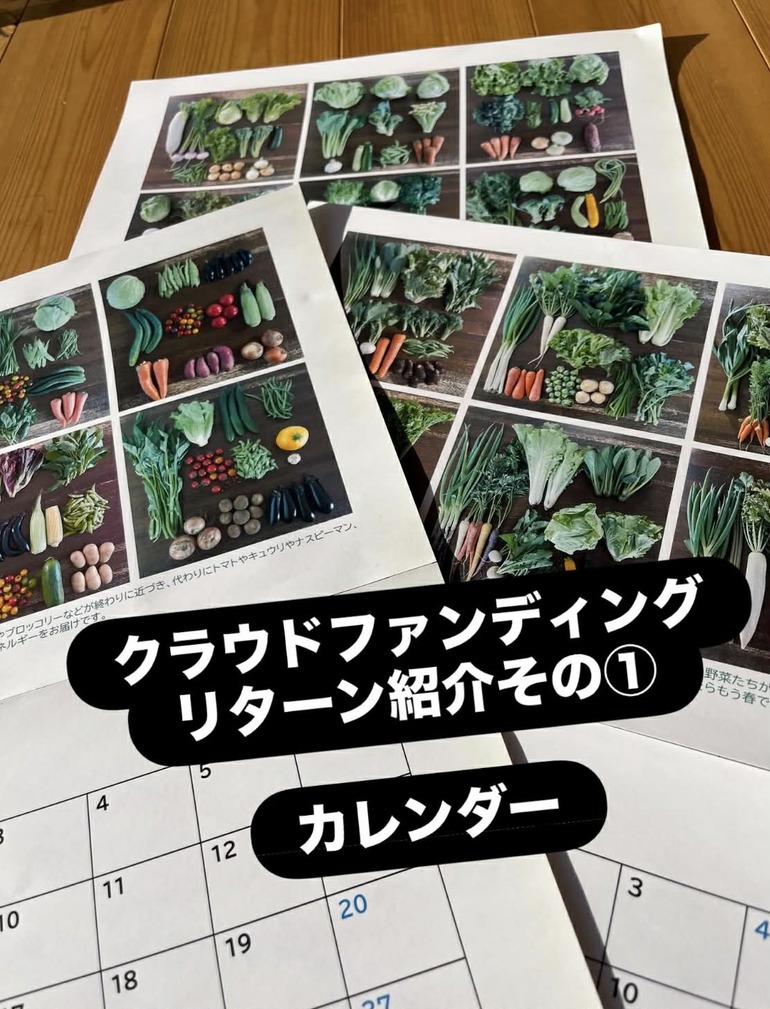 このカレンダーはスタッフの一人が十数年間毎週野菜セットをきれいに並べて撮影した写真を沢山載せています。これを見れば今月はこんな野菜が来るのだとわかり、野菜セットのお客様にとってはべんりなのではないかと思います。野菜セットのお客様ではなくても旬の野菜が一目でわかってよいのではないかと思います。