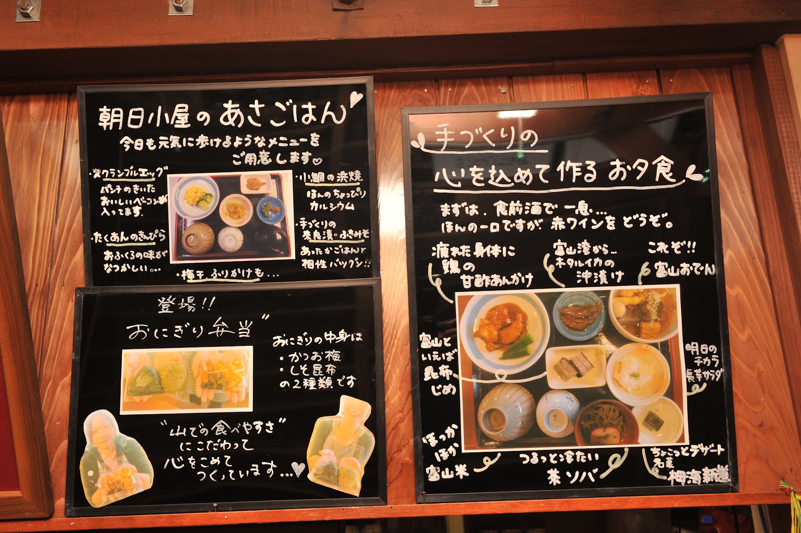その日の夕食時。食堂に集まった登山者に、清水さんが献立を紹介してくれました。ご飯は富山県産のコシヒカリ、昆布じめのカジキの刺身、ホタルイカの沖漬けなど。地元富山の名産の料理がずらりと食卓に並びました。