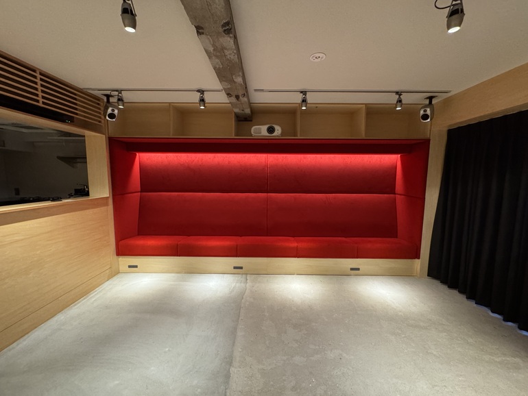 特にシンプルな映画館じゃない中で、どのように映画館らしさを表現できるかこだわって作った深紅のソファはとても印象的で、空間を象徴するような仕上がりになりました。