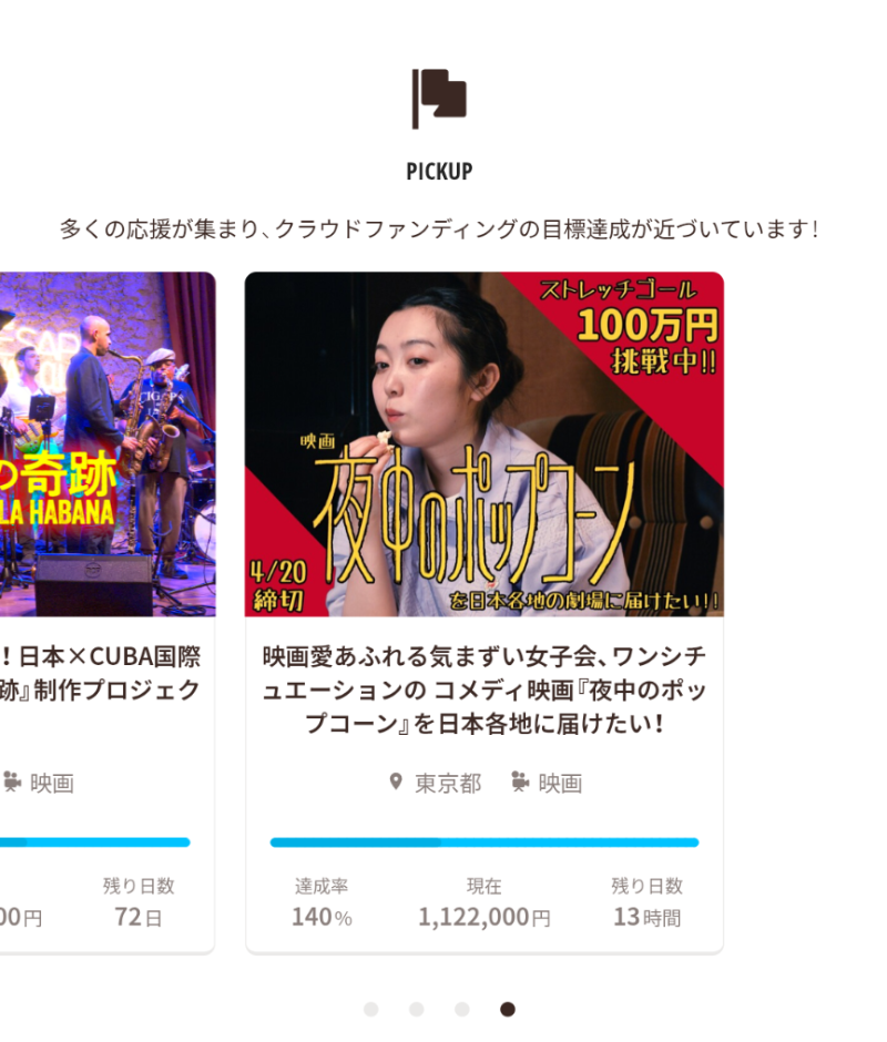 達成率の高い人気プロジェクトを取り上げる