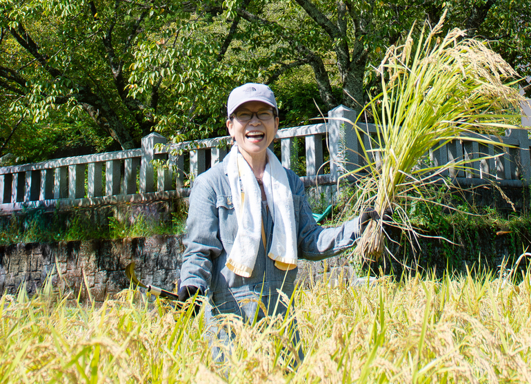 稲刈り初体験!友人家族の稲刈りを地域の仲間とお手伝い。