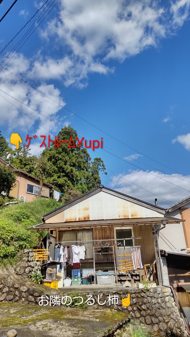 お隣さんのつるし柿!…お隣と言っても、高さは完全に階下。山肌を切り開いて生活している熊野の景色。
