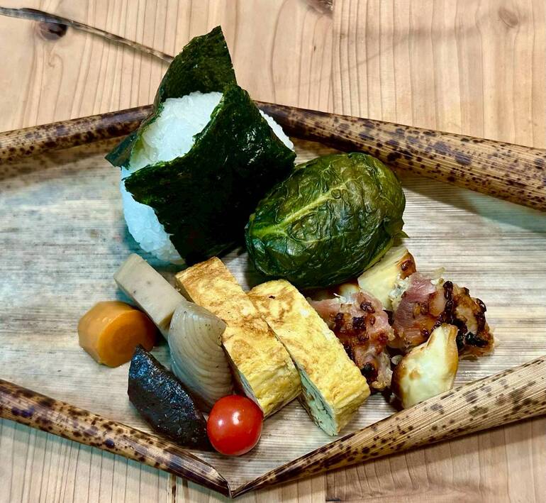 竹皮で包んだお弁当、古道歩きにぴったり!