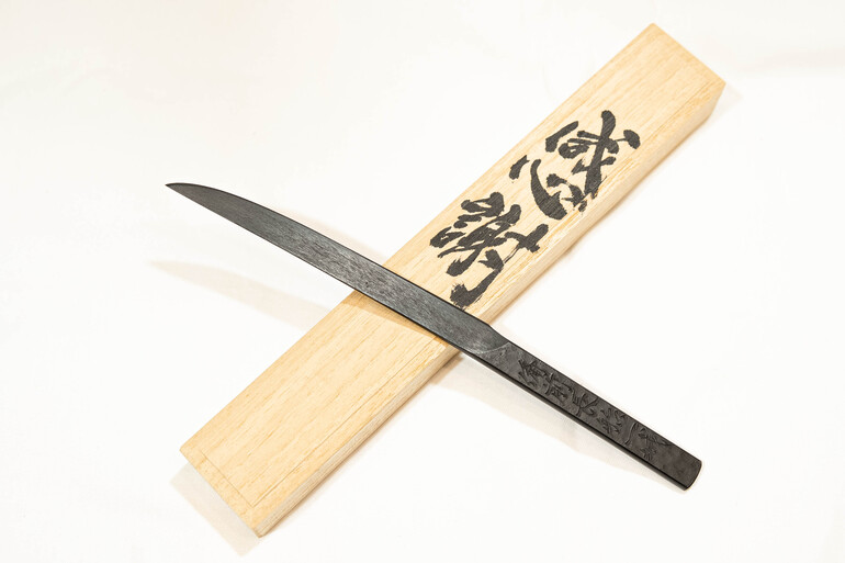 He spends his days crafting swords, aiming to create the ornate Fukuoka Ichimonji style of Bizen-den swords, which flourished from the 13th to 15th centuries. His swords are popular both at home and abroad, from Tokyo to Paris, France, and he receives a constant stream of requests to forge swords. He also strives to create products that are in tune with the individual, and his knives are beloved by many.
