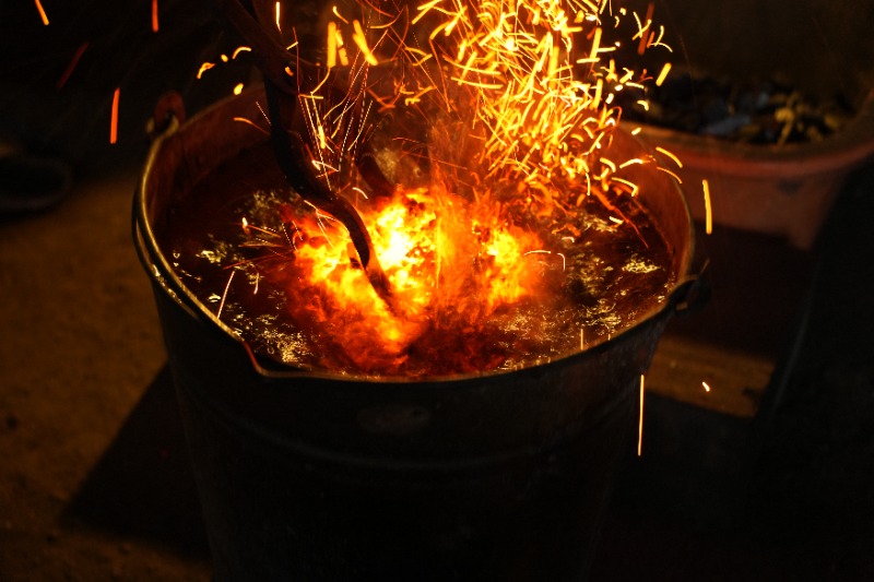 何度も熱せられ、冷やされる鋼