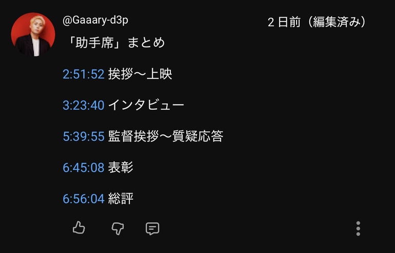 エンディング曲を担当したGaaaryさんがコメント欄にタイムを入れてくれてますので