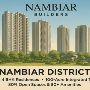 Experience modern living at Nambiar District 25, a 100-acre smart township on Sarjapur Road, East Bangalore. Offering 2.5 to 4 BHK apartments with villa-style designs, this iconic project blends urban convenience with serene green spaces. With Club SOHO, 125+ amenities.